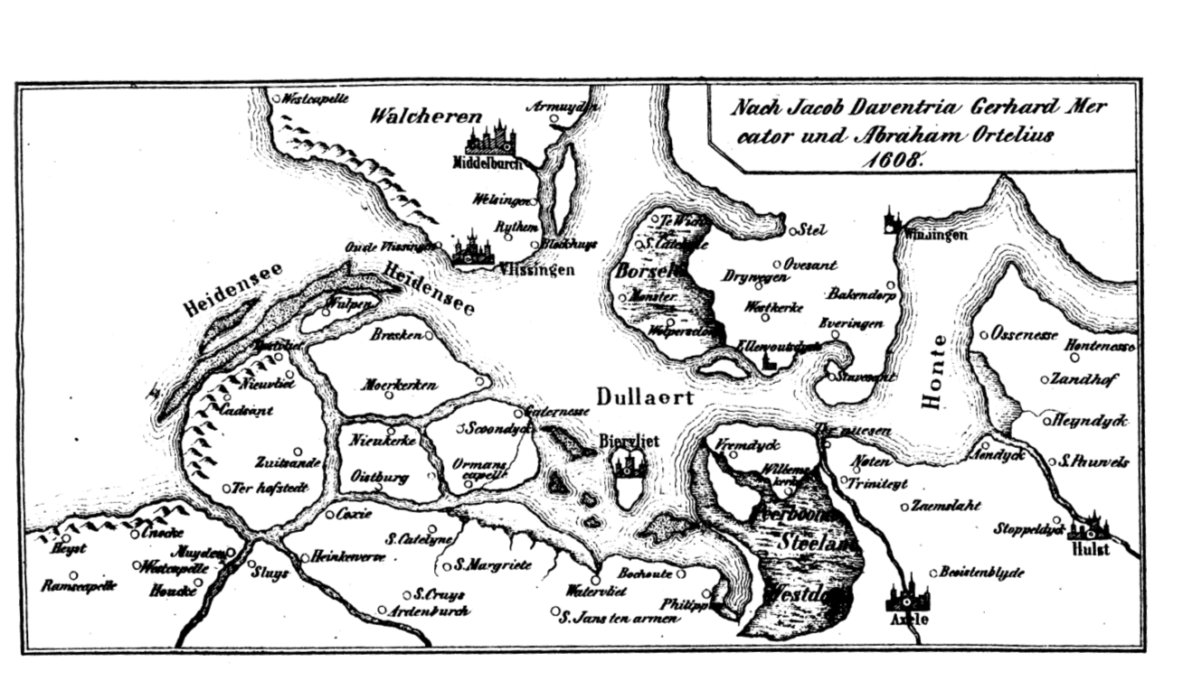 What excited me was that the story takes place in the delta of the Schelde. A map from the 14th century shows various places which belong to the Kudrun, like the Heidensee and Wulpen. On this island Hettel, Herwig and Siegfried fight against Hartmut, whose father Ludwig kills Hettel. One of the reasons that the Kudrun tickled my interest is the appearance of three heroes: Wate, Fruote and Horand. They are nobody else than Óðinn, Freyr and Hœnir.