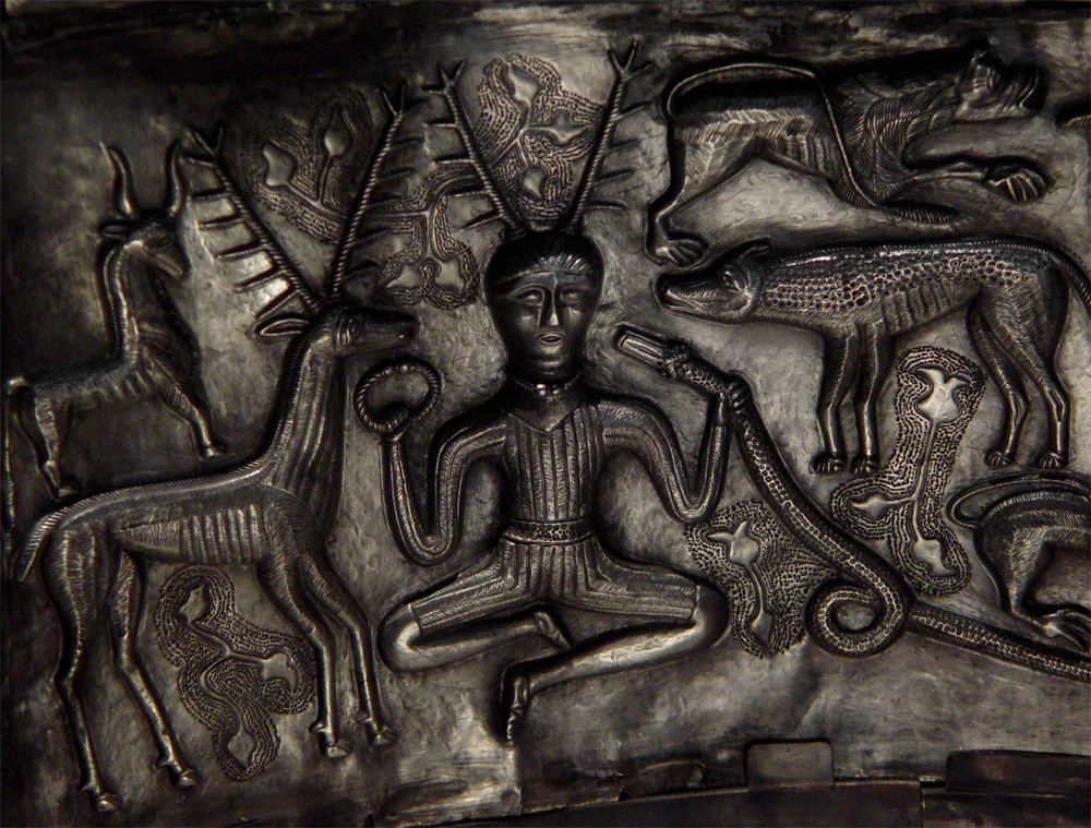 The collar is not something a slave in the classical sense wore or designated the status of an economical slave. On the contrary, the golden torcs which have been found, suggest that the were worn by a more wealthier class. However, the collar is not only a nice piece of jewelry. The wearing of the torc reveals a more mythological background. On the cauldron of Gundestrup we see probably Cernunnos with a neckring and holding a neckring. It seems as he is showing the ring to the viewer. It seems that he wants to show us that the ring is a part of a (initiation) ritual in which the ring-bearer plays a central role.