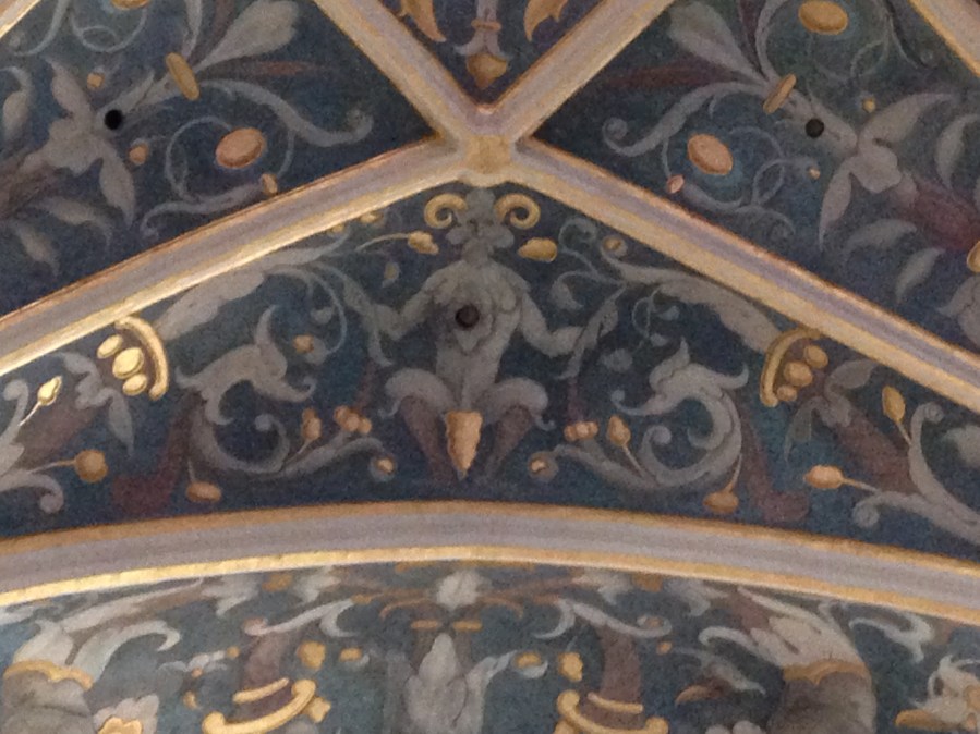 Horned, satyr-like figure on the ceiling. The penis has not been covered!